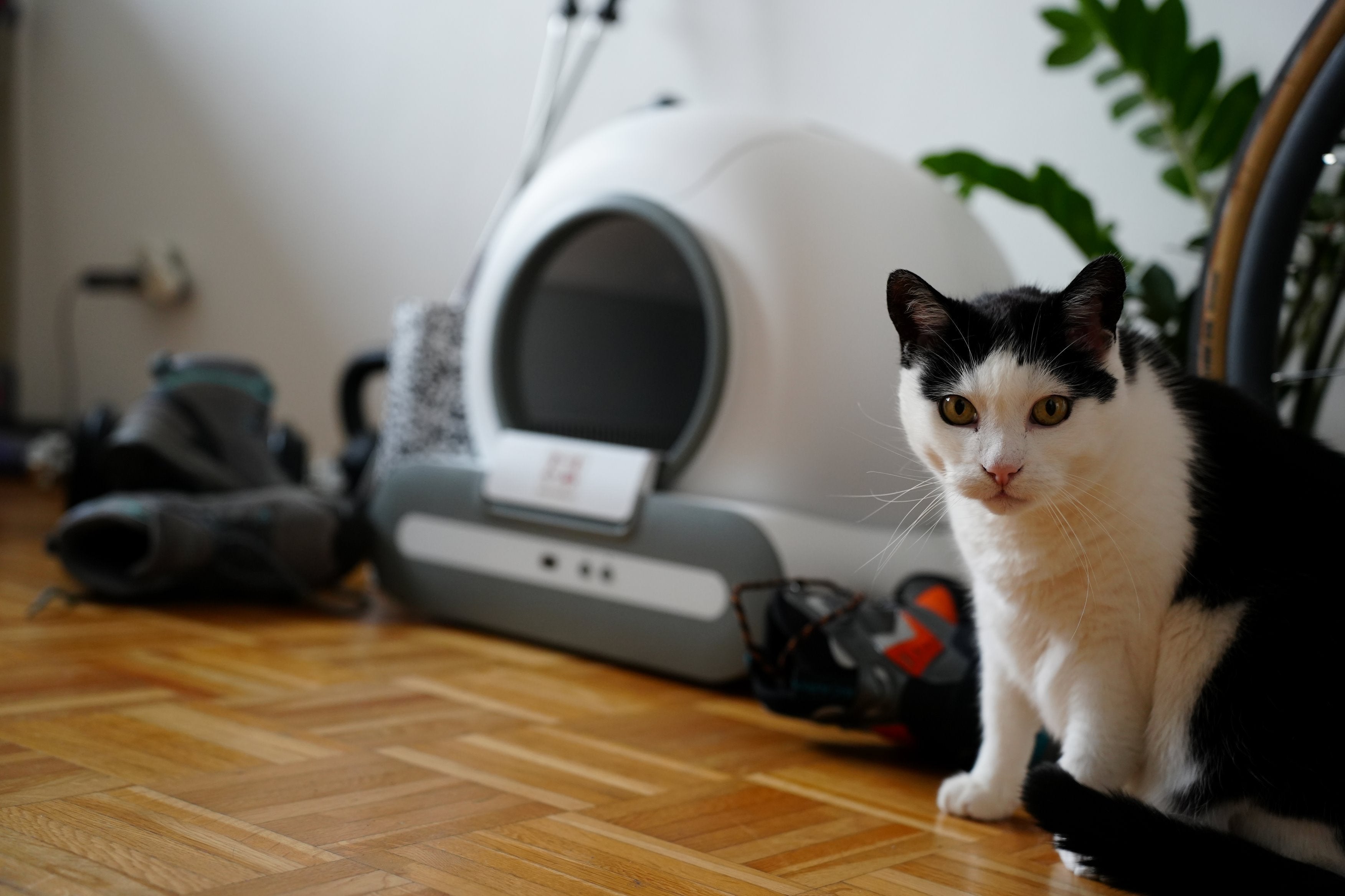 Je nach Streu kann die Ausrichtung der Streu im Katzenklo nach jedem Reinigungsprozess variieren. Technisch bedingt kann das Niveau der Streu auf der rechten Seite höher ausfallen.