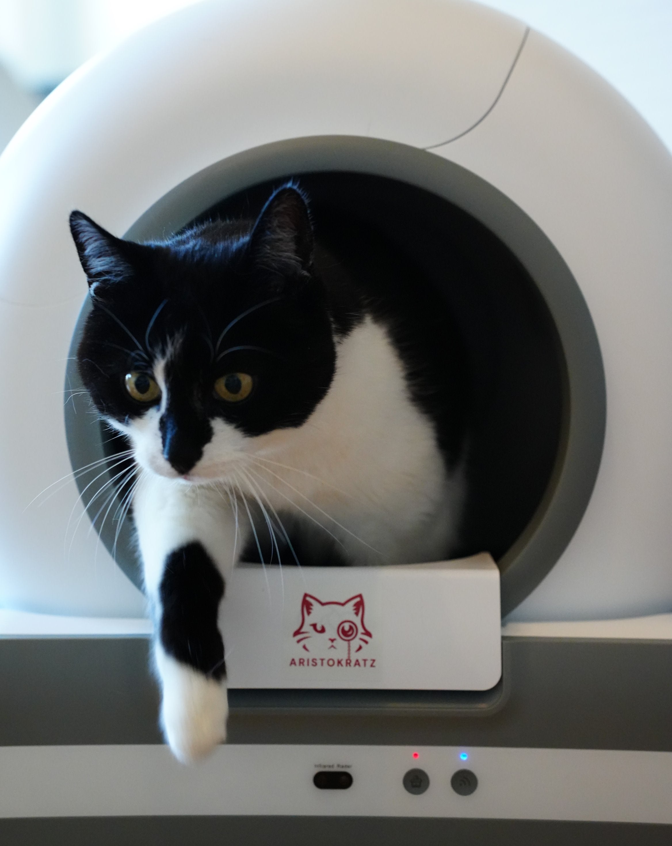Drücke danach für 2 Sekunden die Reinigungstaste, DasKlo nivelliert die Streu automatisch.